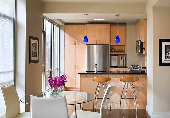 Sun-filled corner condominium with south and west exposures for rent with walls of glass! Two generous-sized bedrooms, two large baths, and a spacious and open floor plan. The kitchen has a wall of windows, gas cooking, granite counters, a breakfast bar for stools, and is open to the living dining room for informal entertaining. The living/dining room has walnut-stained hardwood floors, and the bedrooms are carpeted. The building has an elegant, modernist lobby with two elevators. It leads out to a sunny common patio with tables and chairs for the use of the residents. There are bike racks in the garage, and the apartment includes one garage parking space (No. 18), and additional spaces are available for rent. Don't miss this one!
