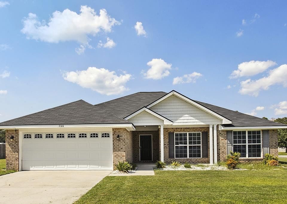 *** SELLER OFFERING $5,000 IN CLOSING COST WITH FULL PRICE OFFER *** This elegant 4-bed, 2-bath all-brick ranch offers 1,767 sq ft of living space. The welcoming foyer sets the tone for this remarkable home with exquisite ceramic tile flooring in the main living areas and cozy bedroom carpeting. The modern kitchen, complete with a stylish backsplash, stainless steel appliances, and a fantastic island is open to the living room for gatherings and entertaining. A walk-in pantry adds convenience. The master bedroom features a tasteful tray ceiling, and the master bath offers a garden tub, separate shower, and double vanities for pampering. Enjoy outdoor living on the covered back porch, and take advantage of the spacious corner lot for outdoor activities. Plus, there are two community pools and a playground for summer fun! Located at 700 Highgrove Court, Hinesville, GA 31313, this is your dream home.