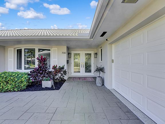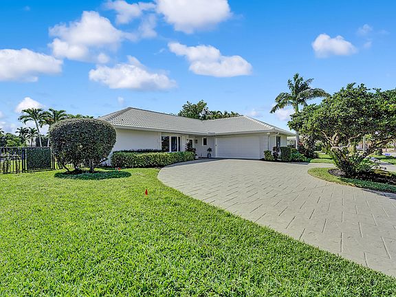 Set on 95ft (+/-) of water frontage in East Boca Raton's coveted Camino Gardens, this newly updated residence is a masterpiece of modern coastal living. Expansive, light-filled living spaces welcome you with 3 beautifully appointed bedrooms, 3 gorgeous bathrooms and new White Oak hardwood floors throughout. The chef-inspired kitchen dazzles with custom dovetailed cabinetry, stainless steel appliances, and quartz countertops. Outside, a private waterfront oasis awaits with a southeast-facing pool, travertine decking, and breathtaking views of the El Rio Canal. The newer dock offers direct boat access to turquoise waters. Additional features include hurricane-impact windows and doors, newer electrical panel, custom closets, HVAC, Wi-Fi irrigation, saltwater pool, fence, and a newer roof.