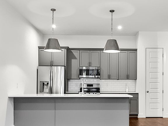 Within this townhouse, you'll find three generously sized bedrooms, each equipped with ample closet space, and three full bathrooms to ensure comfort and convenience for all residents. The contemporary kitchen serves as the heart of this home, boasting elegant quartz countertops and a spacious island, ideal for dining and entertaining your guests.