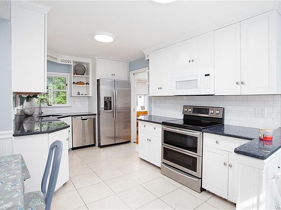 This 3000 sq ft colonial sits on almost 1 acre of lovely private property. Flexible floor plan for today s lifestyle, living room with working fireplace and doors out to deck and expansive yard, dining room, updated kitchen, den/office and huge family room, plus 1st floor bedroom with its own bath great for a master OR use it as a work at home office. Upstairs boasts master bedroom bedroom/office/nursery, hall bath and another good size bedroom all with good closet space and storage. Lower level leads to 2-car garage, bonus storage, full bath, laundry and utilities and did I mention desirable Yorktown schools! Privacy galore and a country setting yet close to all!