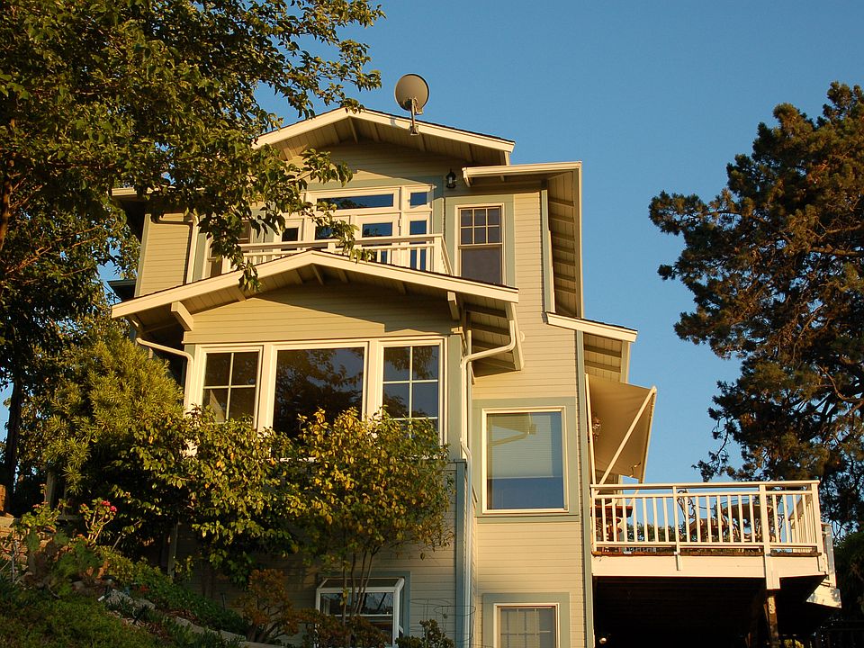 Three level hillside water view home completely remodeled in 2008. Craftsman style interior trim. Updated kitchen with blue pearl granite counter tops.