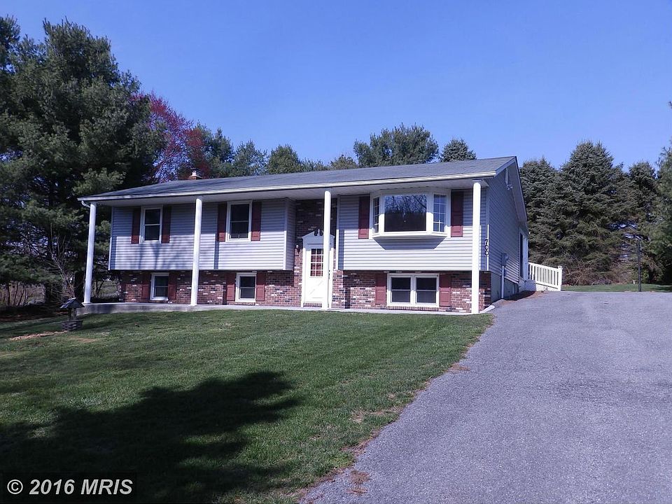 Get ready to move! Unique split foyer with potential for in-law section; features 3 bedrooms, 3 full baths, lovely wood flooring, lower family room w/brick hearth, brick wall and wood stove as well as a small office/study and walk out to back yard. Sun room off dining room where you can enjoy the great lot w/mature trees! Home in good condition, wide driveway for plenty of parking.