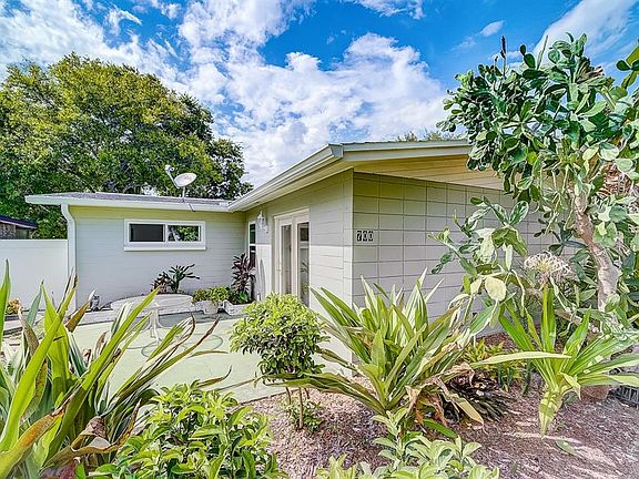 MOVE-IN-READY three bedroom, two bath, TWO CAR GARAGE home with lush, tropical landscaping conveniently located in South Daytona. Upon entry, visitors are greeted with a spacious living area overlooking a quaint garden area through French doors. The kitchen has been updated with stainless steel appliances, gorgeous granite countertops, and a neutral subway tile backsplash. The guest bathroom and master bathroom have been partially updated with Bath Fitters showers. This home is flooded with natural light during the day and boasts new windows throughout. Enjoy your private piece of paradise in the spacious backyard featuring a screened in patio with plenty of room for a pool! Recent updates include new WINDOWS, GUTTERS, and WHITE VINYL FENCE. Close to Beville Road shopping and James Park.