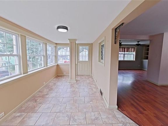 Welcome to this beautifully updated 2-bedroom, 1-bath home, thoughtfully maintained over the past 13 years. Step inside to discover an inviting entry hall that doubles as a small home office space, perfect for remote work or study. The spacious eat-in kitchen features a stylish island and pantry, ideal for culinary enthusiasts. The formal dining area boasts built-in shelving, adding character and convenience for all your entertaining needs. The generously sized living room invites relaxation, complete with additional built-in shelving for your favorite decor.