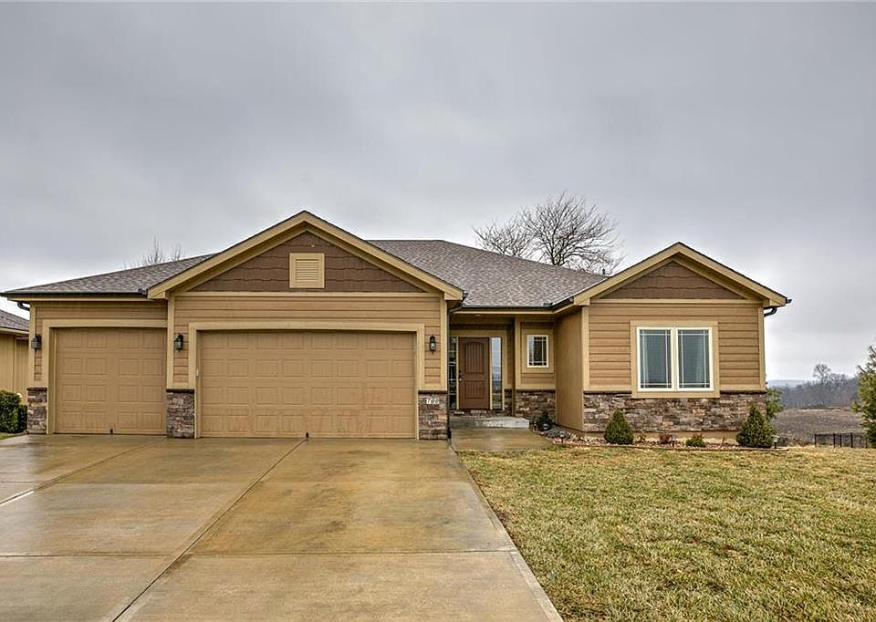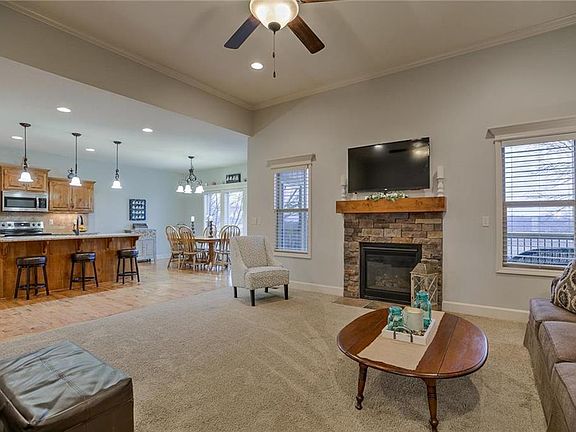 Modern colors and fixtures in this amazing Ranch floor plan. Fresh paint and beautiful custom cabinets throughout. The living room features a fireplace. 3 bedrooms on the main level and 1 in the basement. Master suite has spacious walk-in closet, double vanity, and walk-in shower. Convenient upstairs laundry room with ample cabinet space and built in ironing board. New carpet in the finished, walk-out basement. Large covered deck and patio with ceiling fan. Deck recently stained and gutters cleaned.