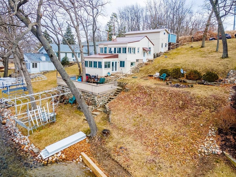 87.5 Ft of lakefront on Jimmerson Lk. Enjoy barbeques and beautiful sunset views on the expansive lakeside deck. This lakefront home was completely renovated in 2021 plus a 2nd two story building built on 2x6's held down with cables and anchors was added for extra storage. New vinyl siding and metal roof in 2021 to match the new building, new appliances 2021, 2 new mini split heating/cooling units, new well pump and water heater 2021. The main level windows were replace in 2022, the deck was painted 2022. The kitchen, dining area and living room are open concept with lots of windows to enjoy the views. The kitchen has a breakfast bar, stainless appliances and butcher block countertops. New luxury vinyl plank flooring throughout. The new building has a GFA furnace and central air. There is a storage room and game room on the main level, plus two sleeping rooms upstairs. Includes kitchen appliances, stack washer/dryer, pier and contents in storage area under the deck. No value on the cottage. Selling As-Is. Use the cottage the way it is or tear down and build new. Blue shed is excluded. There is a small sandy beach on the vacant lot part of the property. It goes out 20 feet and then gets soft. It doesn't drop off until about 30 feet from the shore. For Sale outside of real estate: 2012 JC Tritoon with 200HP Evinrude that seats 16 with boat guard quick cover that was installed in 2022 $36,000.