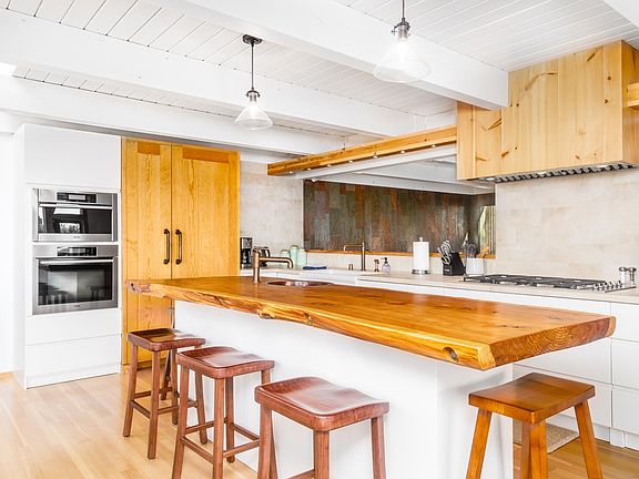 Custom built luxury 2-bedroom executive rental with award-winning gourmet kitchen and private hot tub. As seen in Alaska's Best Kitchens Magazine, this custom retreat boasts not only a grand-prize kitchen but also a private park-like setting. Occupying the upper level of a triplex, this home offers a gorgeous garden paradise with breathtaking views of Cook Inlet. The expansive views continue inside, where you'll find a masterpiece of style and design. The crowning jewel is the kitchen, of course, described as "truly Alaskan with a bit of California Redwoods" by the magazine. Made from recycled fixtures and green materials, this iconic space features a steam oven, convection oven, two dishwashers, a Miele cooktop, and an exquisite redwood island. Upstairs, two well-appointed bedrooms offer plenty of space to unwind - each has an office nook for working and learning remotely. Primary bedroom has a King bed and en-suite bathroom, secondary bedroom has 2 queen beds and an en-suite bathroom. Downstairs, a tranquil zen room provides additional sleeping space with a sofa that can pull out to a twin or double bed. Come live at a beautiful space that seamlessly blends traditional influences with mid-century modern inspiration! Fully furnished with high end finishes. All utilities, including Internet, are included. Lease is only available September 1, 2025 - April 30, 2026, 7 month lease terms available. Security deposit equal to monthly rent due at lease signing. One driveway parking space provided. No smoking of any type allowed in/on property. No pets allowed.
