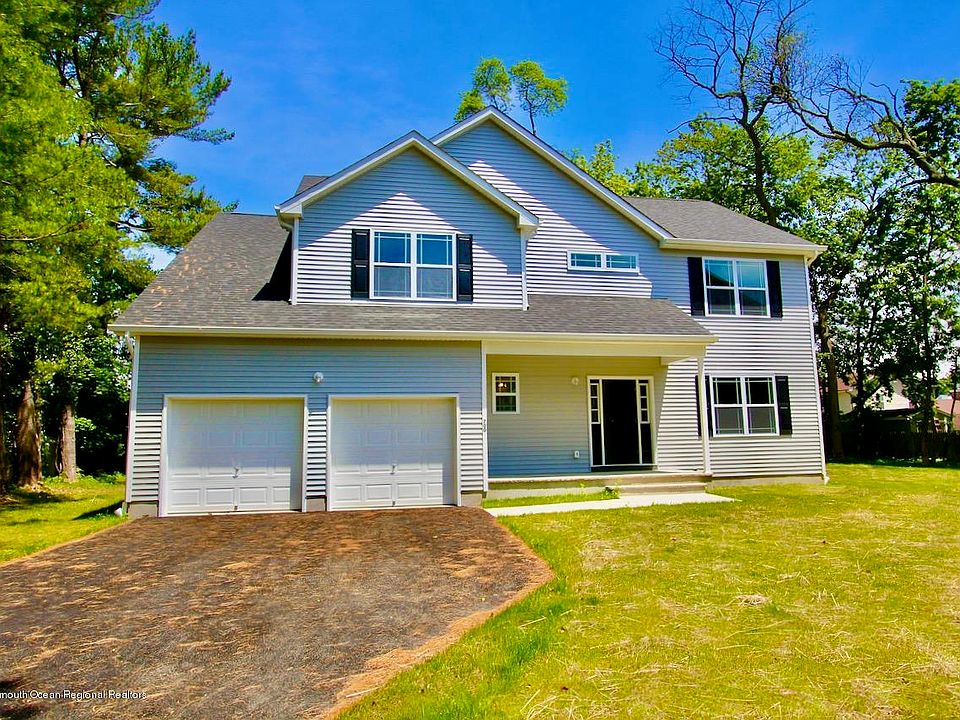 BRAND NEW 4 bdrm 2.5 Bth Colonial just blocks to Shark River Golf Course.. Open floor plan with hardwood floors on the main level. Formal LR/ DR. White Country Kitchen , center Island, Great room with gas fireplace. MBR suite with dual closets AND a walkin, Full bath w/ shower stall. First floor Mud rm/laundry room, entry from the 2 car garage. Full basement, deck, 2 zone HVAC, underground utilities. 10 year builder warranty.