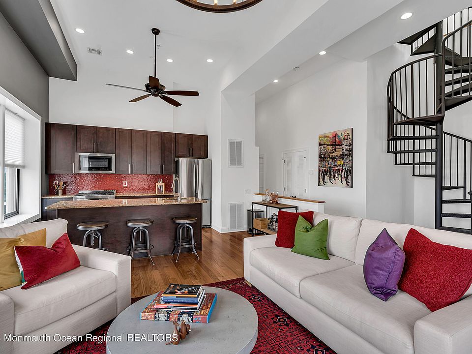 Live in the epicenter of Asbury Park's cultural renaissance and still be blocks to the beach and the NYC train. Walk to the best restaurants and galleries or enjoy an outdoor Happy Hour listening to music. This gut renovated penthouse condo has a 2 story loft feeling.....7 oversized windows open to views of downtown and sunshine, large living area and center island kitchen are perfect for entertaining guests. BUT what makes this condo exceptional is the huge rooftop patio, grill, lay in the sun, read a book and overlook Ocean Grove, Asbury and a bit of the Atlantic. Back downstairs you will find a well sized en-suite primary bedroom, a powder room and W/D. A storage cage is also included, large enough to store bikes, surf boards and all the extras.