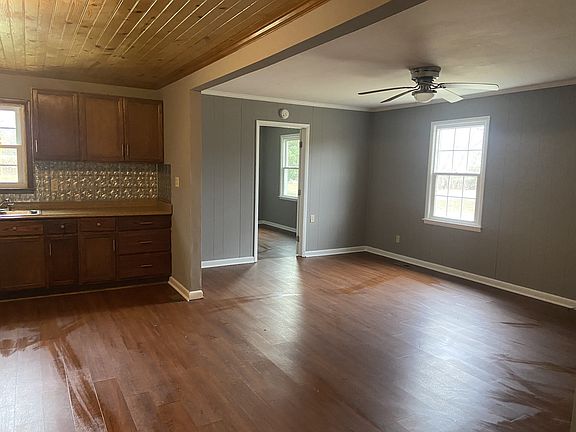 Nice corner lot with 1.2 acres, 5 Bedroom (only permitted for 3 bedroom), 2 bath home 12 minutes from town. Vinyl flooring throughout, fresh paint, new HVAC was installed in 2024, roof is less than 5 years old. Kitchen has tongue and grove ceiling, new tub shower surround in hall bath, new vanity in primary bath. 100% financing is available. Home includes a large 36x40 detached building with power, lot has mature trees and lots of potential! Well water is available on the property.