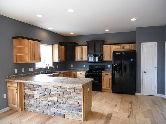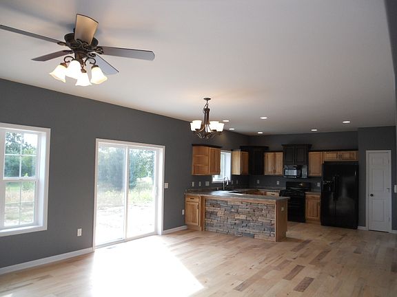 Attractive brand new construction awaits its first owner! Situated on a large 1/2 acre+ lot, this 2003 sq ft home features a three bedroom/2 bath layout, hickory floors & 9ft ceilings gracing main floor, handsome staggered two-tone hickory cabinets & appliance package, stone accented peninsula, gas FP, main floor laundry, & 1/2 bath. Spacious master offers large walk-in closet & attached master bath w/dual sink vanity. Additional side parking pad and an oversized 3 car GA accommodates large vehicles. Home includes a one year builder's warranty and final grade/seeding. Be the first to own this quality built home at a great price.