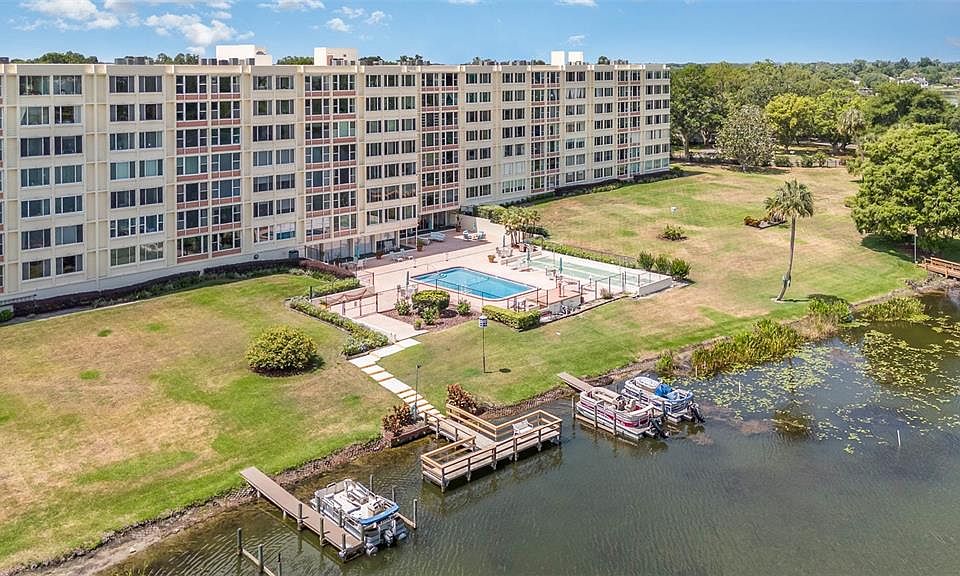 Welcome Home to your beautifully updated LAKEFRONT condo in bustling Spring Lake Towers 55+ community!! This second floor unit located conveniently close to the ELEVATOR boasts an updated kitchen and brand NEW flooring, 2 bedrooms/2 full bathrooms, WALK-IN CLOSET in the large primary bedroom, gorgeous Florida room, all with INCREDIBLE lake and pool views. HOA fee INCLUDES: Community POOL, outdoor grills, fishing/boat DOCK, shuffleboard, laundry room, fitness room, one COVERED PARKING SPACE, library, cable TV, internet, water, sewer, trash, roof, exterior maintenance, and grounds maintenance! This wonderful community also has lots of social events and activities for residents. Beautiful Spring Lake is located on the south CHAIN OF LAKES, perfect for a relaxing boating trip on the water. This is an incredible opportunity to own a truly fantastic property in a prime location!!