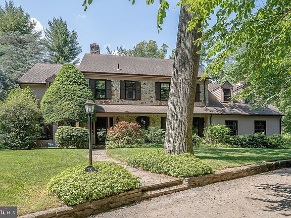 This 5-bedroom 4.5-bathroom stone and siding farmhouse built in the 1960s is a classic example of sturdy and timeless architecture. It is a surprising home. It boasts great bones and provides a solid base for cosmetic touches or upgrades. Just a bit of TLC (painting and floor refinishing) will transform this property into a modern and elegant residence but again the possibilities are immense. The home sits on a .82 acres lot with lush greenery and mature trees for privacy and shade and an appealing pool. As you approach, you'll be greeted by the charming stone exterior that is characteristic of farmhouse-style homes. The old-world welcoming foyer with its classic staircase leads to a very large living room with a fireplace and a bank of windows overlooking the back yard/pool area with glass door opening to an extensive brick patio. The formal dining room, boasting a very convenient wall of built-ins, is at the opposite side of house, at the end of the wide hallway, Between the living room and the dining room, off the foyer/hallway, there are the powder room and the cozy family room with fireplace, built-ins, wet bar and, again, a wall of windows with door overlooking and giving access to the brick patio and the pool area. The white redone kitchen has granite countertops, gas cooktop, double ovens, side by side stainless steel sink and refrigerator, and a nice island with seating that can be used for breakfasts and/or easy meals and provides additional storage and workspace. The laundry room, adjacent to the kitchen has been used also as mud room since is accessible from the backyard and the two-car garage. There are two sets of stairs to the second floor where all the five well-proportioned bedrooms and the four bathrooms are. The main staircase leads from the foyer to four of the bedrooms and three of the baths. The primary bedroom features an en-suite bath remodeled approximately 10 years ago, and two closets, one a walk-in closet. From this room you can directly access another bath and this feature gives the room the “his & her” baths option. This second bath was designed to be the en-suite bath of the second bedroom, a very pleasant room with a very large walk-in closet, that is now used as an office. This set-up may create, as presently used, a very large primary suite. Two other bedrooms, both of generous size, and a hall bath are off the second-floor landing. The second set of stairs leads to the fifth bedroom and the redone en-suite fourth bath, located over the garage. This room is quite large and offers a very generous walk-in closed and can be accessed also thought the fourth bedroom. A door of the second-floor hallway opens to the set of stairs leading to the attic. The original owners created, at one end of this floor, a room. This room was served in the 70’s by an electric baseboard heater and an a/c window unit that are still present but were never used by the current owner. The basement is partially finished and has access to the outside using a bulkhead door. The finished part was used as game/playroom. The unfinished part is used for storage but could be converted into an office, a gym, or a media room. The central focus of the private and spacious backyard with the large brick patio, perfect for outdoor dining and entertaining, is the appealing pool. A pool shed was built to accommodate pool and garden accessories. The driveway has an oval shape for easy turn-around. An added car lot area was created to give plenty of space to park several cars. Among other things, this home offers, under the carpets, original hardwood floors, a 20KW Generac generator and a grass sprinkler system. With its classic features and timeless charm this property is really be a true gem.