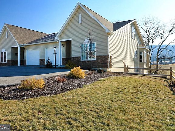 Stony Pointe condos offer a village-like atmosphere, maintenance free living & a quiet country setting. This immaculate custom built one-owner unit is overflowing with an abundance of natural light, open concept floorplan, hardwood floors, striking light fixtures & bright & fresh painted interior. The stunning kitchen delivers beautiful cabinetry, Quartz countertops, included stainless appliances & a breakfast bar. The delightful dining area has a bump out bay window & is open to the alluring great room that features a vaulted ceiling, charming stone fireplace, a wall of windows that delivers a scenic view of neighboring farm fields & mountain ranges. The sliding glass door leads you to the deck offering a great place to relax or grill up dinner on a summer evening. The first floor owner suite features a spacious walk-in closet & a private full bath with a dual vanity & tile flooring. There is an additional bedroom on the main floor as well as a full bath. Upstairs you will find a 18x22 bedroom & another full bath. The full unfinished walk-out basement provides plenty of storage, plumbed for a bath, could easily be finished for additional living space & walks to a rear concrete patio. Additional highlights are this appealing condo include a handy 1st floor laundry room, 1 car garage, heat pump & central air. Low monthly condo fee takes care of snow removal, lawn care & trash. Only 15 mins to State College/PSU, 6 miles to Bellefonte & an easy commute to Lock Haven.