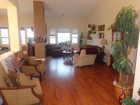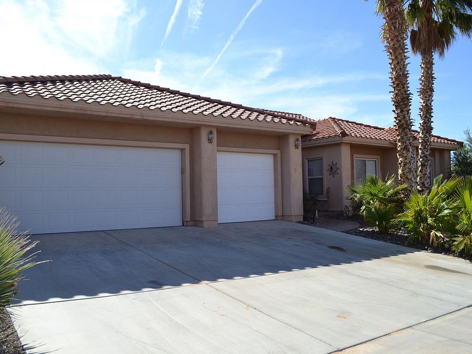 Very nice 4 bedroom 3 bathroom home on golf course. Large master bedroom on the main floor with separate shower and tub. Large kitchen with beautiful cabinets and granite counters. Plenty of room for entertaining. Covered balcony off of kitchen and master with great golf course and mountain views. Spacious office off of the entryway. Downstairs has 2 spacious bedrooms and 1 full bath. Living room with wet bar that walk out to private pool with large covered patio. New hardwood and tile were done two years ago and look new. 3 car garage provides lots of parking. Laundry room has a sink. Storage shed in back yard.