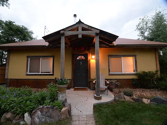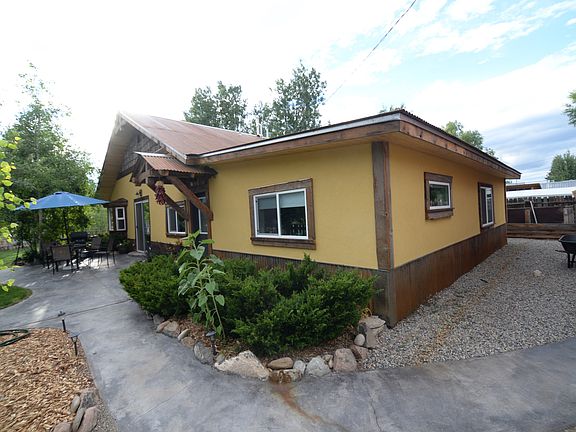 Charming one-level home in town. This house has been meticulously updated by a professional Gunnison-based remodeler. Less than five blocks from all schools, downtown, and grocery stores, this sunny corner lot sits in a fantastic location. The large detached two-car garage is insulated, featuring strong shelves, an extensive work-bench, and a new insulated automatic door. The house entryway/mudroom is spacious with built-in organization, easily fitting all the jackets and accessories the Gunnison climate requires. The elegant master bedroom features a vaulted ceiling and a walk-in closet. The adjacent full-size bathroom features a tile-tub surround, tile floor and vanity. The secondary bathroom contains the new washer/dryer, shower stall, and a new travertine tile floor. The open floor plan connects the kitchen, living and dining room together under vaulted ceilings. New appliances, custom cabinets and a built-in dining nook make this space comfortable and efficient. A large sliding glass door opens out onto a patio surrounded by aspen trees and greenery. The artisan living room is crafted to be cozy and modern with Douglas Fir floors, a southern bay window, beautiful wood stove, and natural plaster walls. Three more bedrooms offer plenty of space and flexibility, all with their own closets and large windows. All house windows and doors have been updated since 2013, bringing LOTS of natural light and warmth into the house. Two new "sky-tubes" help bring light to interior spaces to help reduce the need to turn lights on during the day. A completely redesigned lighting system features LED recessed lights and track lighting in the kitchen, living room, entryway and master suite. The on-demand water heater was installed in 2013 and is large enough to supply multiple appliances or showers with never-ending hot water. The forced air furnace was installed in 2016 and doesn't leave any corner untouched. Electrical infrastructure and trim has been professionally and thoroughly updated, along with all plumbing and fixtures. New insulation has been installed above current code requirements from the crawlspace through the ceilings. The exterior of the house has been completely updated with style, durability and longevity in mind. A metal skirting offers protection from the elements. Finished with a brilliant stucco and rustic craftsman trusses above each entryway, the house masterfully combines function and fashion. A top-of-the-line metal roof not only adds to the look of the house, but will last many decades. The landscaping is complete, mature and well-designed. Loads of trees and bushes, perennial flowers and an immaculate lawn bring beauty to the outdoor living space. The perimeter has been groomed for low-maintenance and low water needs. A quaint ditch with a bridge makes for a charming entrance to the property. The southeast corner of the property is xeriscaped with productive raised bed gardens and a small green house, all set up with a drip watering system. Finished with low-maintenance rock, the back of the house is tidy and includes a firewood shed, chopping area, chicken coop and run, compost bins and extra shed for mowers, lumber and tools.
