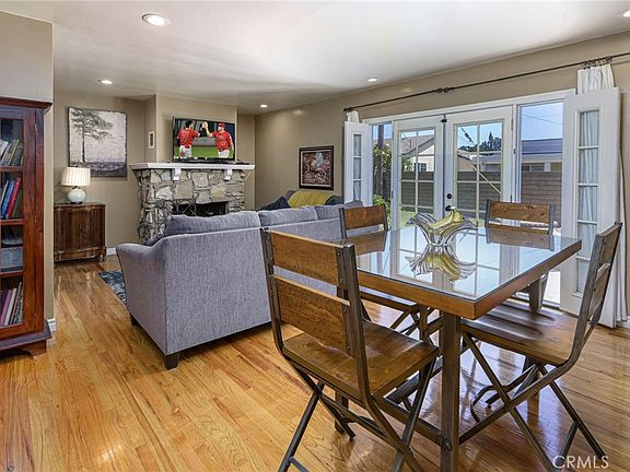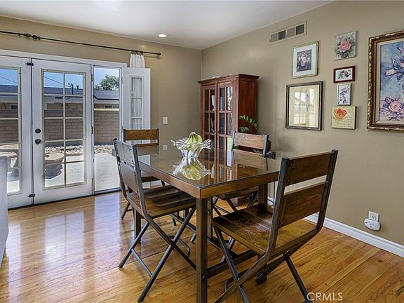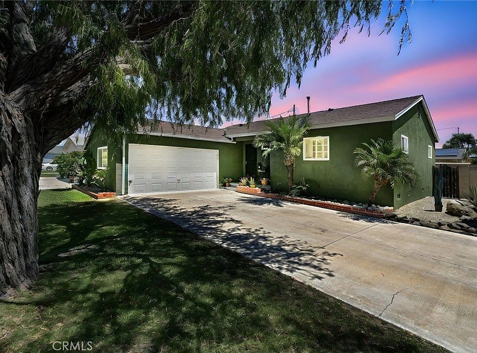 Welcome to a warm and charming home, nestled on a desirable, lush green, tree-lined street in the heart of Anaheim! Minutes from Knotts Berry Farm, Soak City, The Source and Downtown Buena Park. The inviting front porch provides a perfect, calming spot to relax and take in the peaceful surroundings of the picturesque neighborhood. Located on a large corner lot, the home features an extra-long driveway with ample parking, leading to an attached 2 car garage with excellent potential for an ADU conversion. This home offers an ideal blend of comfort and character appeal. Boasting three bedrooms and two bathrooms, it has radiant hardwood floors throughout, dual pane windows, copper plumbing throughout, a spacious remodeled kitchen with granite counter tops, lots of self-closing cabinets offering plenty of storage, and a walk-in pantry. There is a cozy stone accented fireplace in the living room with french doors that open up to a sprawling lush green backyard, making the home bright and airy, great for relaxing or entertaining. Close to the top rated elementary school and park. Centrally located near all major shopping, restaurants, freeways, and much more! Hurry, Make this one yours!!