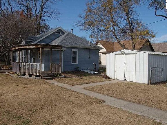Nice corner lot with nice trees and landscaping. Outside has vinyl siding, heritage roof, newer doors, all newer vinyl double pane windows, and a nice covered porch and patio. Outside also has a workshop/storage shed with electricity. Inside there is newer central heat and air. Some newer inside decorating will make this house a completely great place.