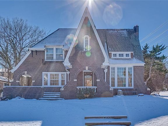 Exquisite Tudor Revival with hard-to-find 2 bedrooms on main floor (for older homeowners/guests)or would be great office/den. Great front & side porches for alfresco dining or visiting w/neighbors. The front room is GRAND with the vaulted ceiling, FABULOUS California Art Tile fireplace, Juliet balcony, wrought iron accents & windows! This house has great flow for entertaining, as you move into the dining room w/crown molding & access to side porch. The breakfast room has original built-ins. Classically updated kitchen has custom cabinets w/leaded glass accent doors, 3cm granite & SS appliances. Both bathrooms (one up, one down) are spacious & have charming original tile.Wonderful staircase w/art nook. Large Master upstairs with nice closet/storage room, another bedroom, cedar closet. Fridge, w/d,& mounted TV in lower back bedroom stay! Sprinkler system, original hardwoods & hardware. 12/16 new HWT & thermostat. Sewer line 2013. If you love UNIQUE Historic, this is the home for you!