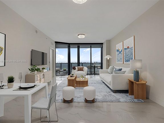 MORE THAN $100,000 IN UPGRADES Enjoy 2 acres of exclusive amenities with unobstructed water views. from this New 2025 Luxurious 3-bedroom, 3.5- bathroom + Den. enjoy 1,648 sqft of living area, and a stunning 235 sqft terrace with direct water views. a private sports marina for paddle boarding and kite kayaking, a three swimming pool two of them overlooking the water. Amazing fitness center, wellness spa, kids' playground, wine lounge, state-of-the-art library, party room, lap pool, tennis and paddleball courts, half-court basketball, and mini golf... 15 minutes from Miami international, airport design District, Midtown, Brickell..... Great Location.