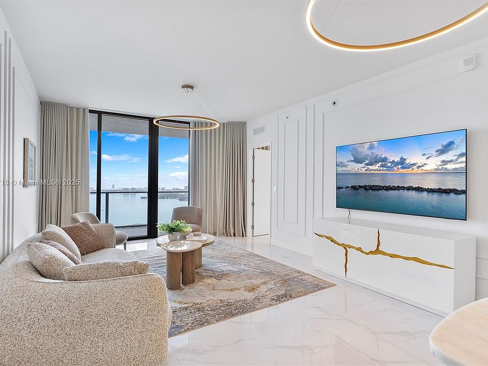 Step into elevated Miami living with this fully furnished 3-bedroom + den, 3.5-bath residence on the 44th floor of the iconic Aria Reserve in Edgewater. Enjoy breathtaking panoramic views of Biscayne Bay and the Miami skyline through floor-to-ceiling windows. Modern open kitchen with premium appliances, custom closets, and designer bathrooms. Expansive terrace. Resort-style amenities include multiple pools, spa, gym, tennis, paddle, kids' area, marina, wine lounge, and co-working spaces. Minutes from Brickell, Design District, and Miami Beach. Copyright Miami Association of Realtors Regional MLS. All rights reserved. Information is deemed reliable but not guaranteed.