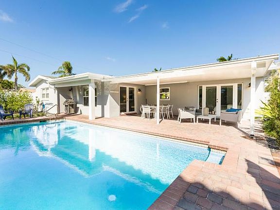 Beautiful renovated in 2016 fully furnished 3 bedroom, 2 bath pool home in East Boca. Open living design with views from most rooms of the pool and fenced yard. Outdoor furnished covered conversational pit is perfect for entertaining. Kitchen is fully equipped with everything you need. Washer and dryer are located inside. One car garage with plenty of parking available. Landlord pays for lawn & pool maintenance. Great location in East Boca to Beaches, Shopping, Restaurants and excellent Boca Schools. Listed bySignature Int'l Premier Properties