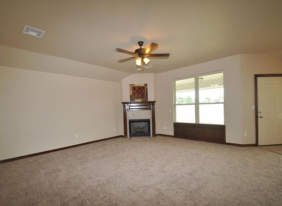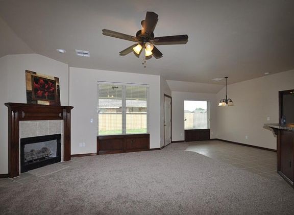 BRAND NEW HOME, designed with your family in mind. Great Corner lot with so much to offer. Living room features a ceiling fan and beautiful fireplace with mantel, complimented with gorgeous wood trim throughout the home. Kitchen includes a breakfast bar, pantry, microwave, and smooth top stove. Nice sized Master Suite with walk-in closet and ceiling fan. The Master Spa has double vanities, garden tub, and separate shower. The spacious backyard boasts a covered patio and privacy fence with metal posts. Home also has a security system. 1 Year Builders Warranty also included. Come see today!