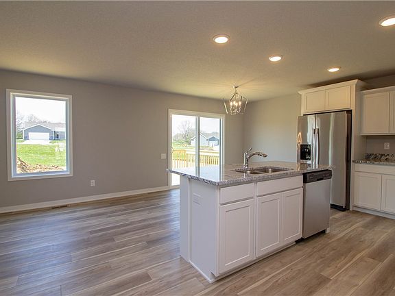 Gorgeous, eye-catching open ranch plan on a large corner lot that has 3 Bedrooms, 2 Bathrooms, Oversized 2.5 car garage w/ openers & 1,500+ SF, on a family friendly street. Split plan w/ 2 Bedrooms & a bathroom at front of home leading into a spacious living room. Large kitchen has stained cabinets, granite countertops, center island, corner pantry & LVP flooring in kitchen-dining-baths & laundry. Master suite is tucked away in back corner of home for privacy & includes tray ceiling, fan/light, double vanity, big shower & huge walk-in closet. Off the garage entrance is an enlarged laundry room w/ big mudroom bench. The basement is ready for future finish to include living room, pre-plumbed for Bathroom, & 1 Bedroom. Exterior features: no maintenance vinyl siding, 30 yr. shingles, cultured stone, covered stoop, fully sodded yard, & tree. Home is HERS energy certified & has 1 yr. builder warranty. Brought to you by Benchmark Builders Iowa, with over four decades of quality experience!