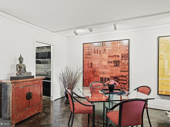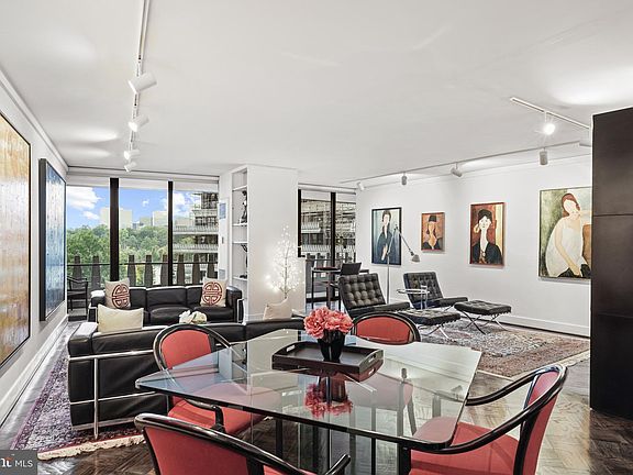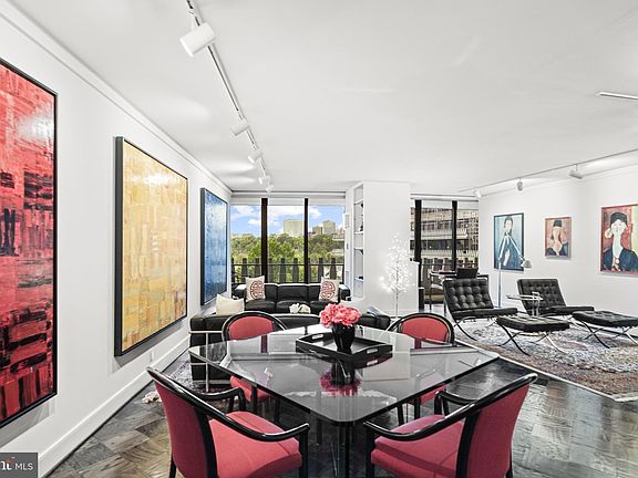 Excellent Renovation with Direct River view! Larger than most two-bedrooms—1,500 square foot one bedroom two bath interior offers a generous living and entertaining space. Wide balcony and floor-to-ceiling windows along the entire perimeter. Marble entry foyer. Gleaming oak parquet floors. Renovated kitchen featuring Absolute black granite counter, Sub Zero refrigerator, Dacor microwave, Dacor cooktop and oven, Bosch dishwasher, contemporary designer backsplash, Kraft Made cabinetry custom made from Italy, Baths feature designer wallcoverings and lighting , Absolute black granite countertops, spa showers, porcelain tile. Primary bath with custom black vanity. Second bath with custom mahogany vanity. Custom wall bookcase with TV in living room to convey. Rare Washer/dryer. Oversized baseboards and custom ceiling moulding, accent lighting. Exceptional closet space, plus additional storage room. Garage parking space included! All inclusive Co-op fee includes property taxes, all utilities, internet/cable, maintenance of HVAC, and underground garage parking. Watergate South amenities include 24-hour front desk service, salt-water outdoor pool & gas grill, fitness center, roof terrace, community room, plus on-site shops and restaurants. High walk score- walking distance to the Kennedy Center, Georgetown Waterfront, Foggy Bottom Metro, Watergate Hotel & Spa, and restaurants, Whole Foods & more!