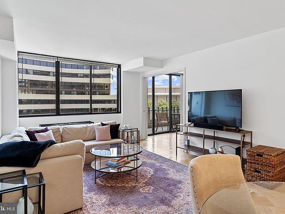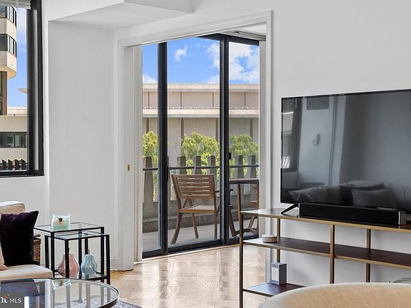 Fantastic Renovation with Potomac River & Kennedy Center Vista! Bright 1,333 square foot interior. 2 bedroom, 2 bath residence. New open kitchen with new quartz countertops, beautiful backsplash, custom cabinets, new GE profile stainless steel appliances, touch faucets. Picture windows across living room. Custom-built pocket door between living room/second bedroom opens to a large span of floor-to-ceiling windows and balcony. The second bedroom has room for a home office. Sunny interior with no balcony overhang above. Restored iconic oak parquet floors. Marble entry. Beautifully renovated primary bath with double sinks and mirrors, heated flooring. Spa-like custom shower with designer tiling, 3 showerheads, and bench. Rare in -unit and well located Miele washer/dryer. Excellent closet space throughout plus additional storage room. Garage parking space included. All inclusive Co-op fee includes property taxes, all utilities, internet/cable, maintenance of HVAC, and underground garage parking. and all building amenities. Watergate South amenities include 24-hour front desk service, salt-water outdoor pool & gas grill, fitness center, roof terrace, community room, plus on-site shops and restaurants. High walk score- walking distance to the Kennedy Center, Georgetown Waterfront, Foggy Bottom Metro, Watergate Hotel & Spa, and restaurants, Whole Foods & more!