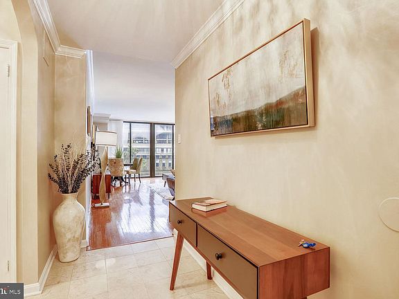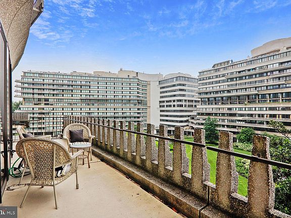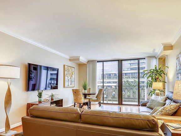 Chic and comfortable living at the full service Watergate South! This large contemporary one bedroom, one bath unit has floor to ceiling windows with great courtyard views and is totally renovated. Enter into the marble laid foyer which glides into the stunning hardwood floors throughout the living and dining combination room. The kitchen has granite countertops, glass tile backsplash, solid maple cabinets, and stainless steel appliances. The bathroom is also renovated with ceramic tile, granite top vanity, with a sliding glass door shower. The master bedroom has new luxury carpet, his and hers closets, and terrific views with access to the oversized balcony. The owner has installed state of the art automatic blackout shades. Views of the courtyard from the oversized balcony are serene. The Watergate fee includes all property taxes, utilities, cable, internet, maintenance, pool, front desk concierge, and extra storage. Terrific DC location is close to Foggy Bottom metro, Georgetown, West End, John F. Kennedy Center of Performing Arts, and easy access to The Wharf in SW. Enjoy the tour: