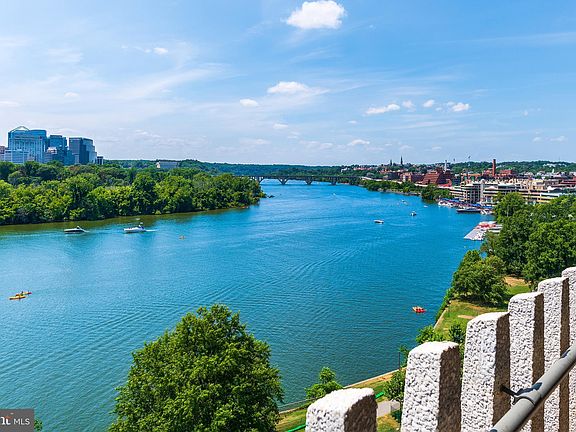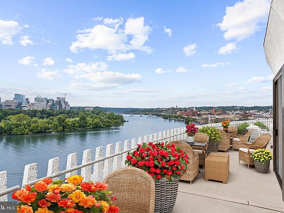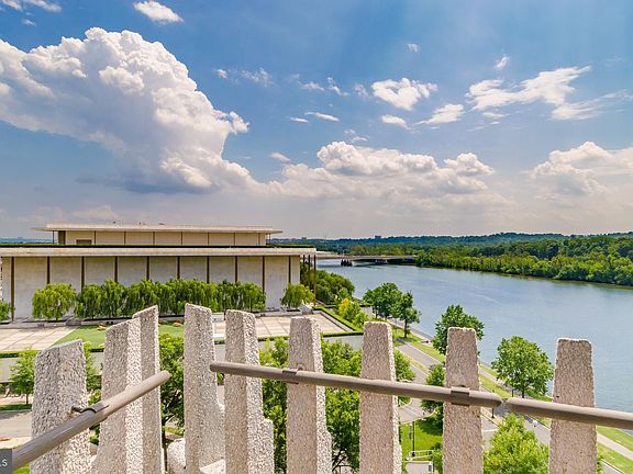 Best river view in the Washington DC area! Rare "On-the-Point" floor plan with spectacular river view. Over 3000 sq. ft. interior. Over 120 ft. long wrap around balcony, fantastic for entertaining. Live on top of the river with a view that spans 3 bridges, The Kennedy Center, Lincoln Memorial, Roosevelt Island and the Georgetown waterfront. Watch crew boats along the river at dawn and spectacular skies at sunset. A moving masterpiece! 2 bedroom and den, 2 .5 baths. Floor to ceiling windows surround the bright and dramatic interior with balcony access from every room. Extra large primary bedroom and spa bath with the best view in town! Library/home office has handsome built- ins and serving bar. Second bedroom in opposite wing from primary bedroom offers privacy. Kitchen with access to balcony. Beautiful spacious separate dining room. Generous walk in closet in primary bedroom plus ample closet space and additional storage room. Three underground garage spaces included! Washer/dryer hook up. Fee includes property taxes, utilities, maintenance of HVAC, basic cable, internet, and parking. Watergate amenities include exercise room, salt water pool, on-site shopping, 24 hour desk, roof deck. Walk to Foggy Bottom Metro, Kennedy Center, Whole Foods, and Georgetown Waterfront. Enjoy on-site shopping, restaurants, Watergate Hotel, and many more conveniences.