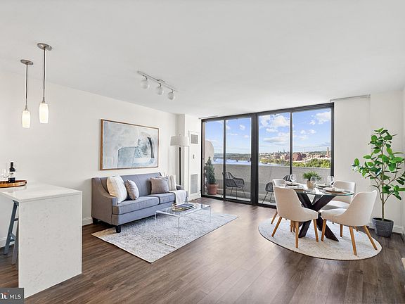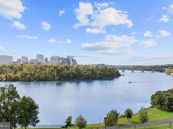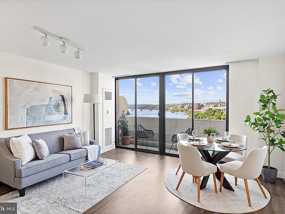 Direct River View From Renovated Two-Bedroom Watergate Dream Residence. Two bedrooms, two full baths. 1,217 square foot interior. Enjoy amazing sunsets and beautiful unobstructed views of the Potomac River and Key Bridge from every room. Long walk out balcony and floor to ceiling windows with access from each room span across the interior. Renovated open kitchen featuring KitchenAid appliances, breakfast bar, white cabinetry with pantry, railway tiled glass backsplash, stone counter and waterfall. 2 superbly appointed baths, each with designer flooring and lighting and handsome vanities. Primary bath features a translucent privacy door and spa shower with designer tile inlay. Second bath features soaking tub with waterfall showerhead and tiled surround. Primary bedroom has terrific custom built-in shelving , bed and storage. Living room opens to the second bedroom offering a flexible floor plan. Suede finish wallcovering in Italian marble entry. Plentiful custom closet space. Underground parking space included in gated garage. Additional storage. Monthly fee is all inclusive covering property taxes, utilities, maintenance of HVAC and basic cable. Watergate South amenities include 24-hour front desk & doorman service, heated outdoor pool, roof terrace, fitness center, beautifully landscaped gardens, plus on-site shops & restaurants. Walking distance to the Kennedy Center, Georgetown Waterfront, Foggy Bottom Metro, Watergate Hotel & Spa, and restaurants.
