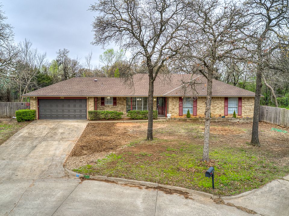 Stunning home with tons of UPDATES! Located at the end of a nice and quiet cul-de-sac. This home has a very well designed floor plan with 1,755 sf, 3 bedrooms, 2 bathrooms, & a 2 car garage and has been REMODELED. FEATURES include vaulted ceilings, BRICK FIREPLACE, wood beam accents, GRANITE countertops, tons of storage, lots of natural light, spacious bedrooms, master suite, large fenced backyard with a COVERED PATIO, and lots more. Just blocks from John Conrad Golf Course. Close to shopping, dining, parks, movie theater, highway access, Tinker AFB, Boeing, Rose State College, and other great community amenities. Call today for a private showing.