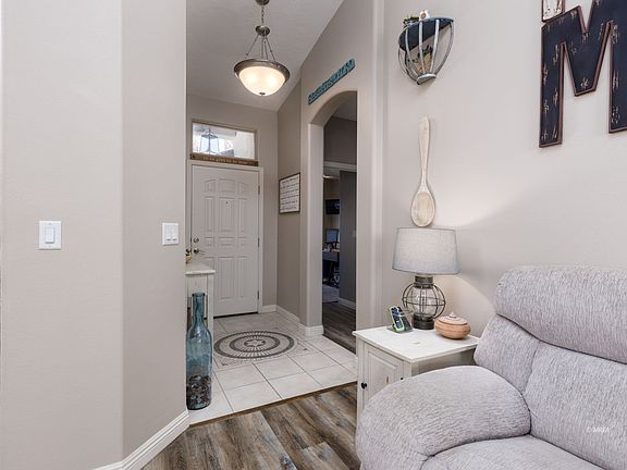 GREAT PRICE ON THIS ABSOLUTELY BEAUTIFUL HOME! Welcome to this beautiful home in Vista Del Lagos featuring many upgrades. All rooms have new hardwood laminate floor - no carpet with new 3" baseboards. Kitchen features new dishwasher, reverse osmosis and roll-out sliding shelves. The spacious living room will accommodate your needs with dual ceiling fans. Large primary bedroom ensuite is gorgeous and spacious! Guest Bathroom has a new walk-in tiled shower. Home features central vacuum, all new ceiling fans throughout and new front yard landscaping (Statue not included). Great mountain views from the large covered patio. Garage has built in cabinet and workbench too! Amenities include Mesquite Vistas Clubhouse, swimming pool, fitness center, pickleball and tennis courts. Come see all this home has to offer!