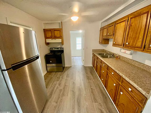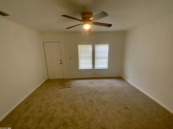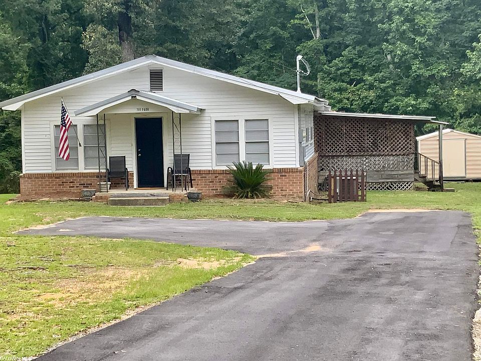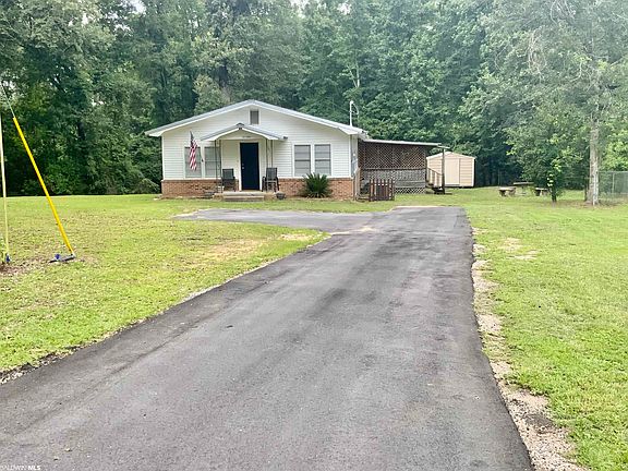 Rare find inside Bay Minette city limits: 3 bedroom, 1.5 bath cottage recently updated sitting on 3 acres! Home features a metal roof, vinyl siding above brick for low exterior maintenance. Interior is freshened up and ready for immediate occupancy! Updates include: fresh interior paint throughout, new ceiling fans, new carpet in all three bedrooms and living room. New LVP in kitchen, dining area, utility room and bathroom. Owner has installed a new stove, refrigerator and water heater (gas). Both washer/dryer convey along with both outbuildings (10X16 and 10X12). Large detached covered parking (12X20). Property consists of two parcels: the larger parcel offers ample green space behind the home, perfect for a storage facility. Covered rear patio (12X12) is under a metal roof with new carpeting. Storm shelter has fresh paint on interior and exterior masonry blocks. Fresh asphalt driveway/parking and upgraded outside electrical panel/service.