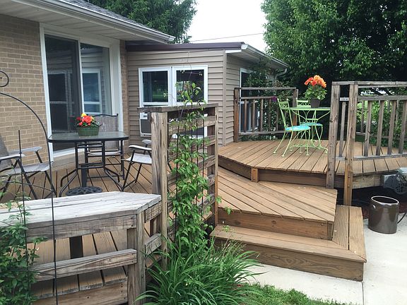 Three bedroom home on corner lot. Full basement recently painted, large dining room, skylight and fireplace in the living room, two tier deck, one car detached garage, and a sunroom. Patio doors in bedroom onto deck. All newer tilt in windows. Sunroom in back of home is so peaceful. Must see to appreciate!
