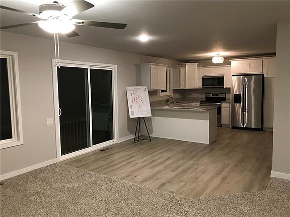 NEW modern-open, ranch plan has: 1,487 SF, 3 BR’s, 2 BA’s, 2+ car garage w/ openers, rear patio, front porch, impressive mud bench & more! Main floor has big laundry/mudroom w/ shiplap bench, spacious kitchen-dining-great room area-perfect for entertaining. Master suite is large, fitting a king size bed easily & connects to the Master BA w/ walk-in shower, double vanity, linen closet, & connects to ample sized master closet. Waterproof/scratch resistant LVP flooring in baths-laundry-kitchen-dining, & entry. 2 nice sized kid’s BR’s on the opposite side of the home w/ walk-in closets. Granite counters throughout, rounded drywall corners, tray ceiling in master BR, & SS appliances w/ refrigerator included! Basement is ready to be finished, w/ bathroom pre-plumbing already done, 2 egress windows & tons of room for storing your personal items. Exterior includes: no maintenance vinyl siding, Tyvek wrap, 30 yr. shingles, cultured stone, fully sodded yard, & tree. 1 yr. builder warranty.
