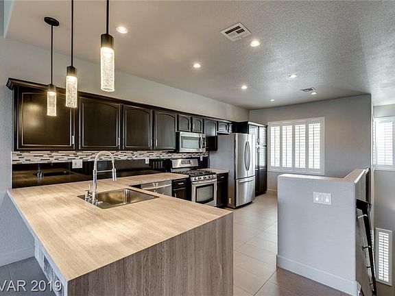 2nd-story condo w/golf course views & over $40,000 in upgrades, including complete kitchen/master reconstruction, 12x24 porcelain tile, & imported stone countertops. Kitchen w/waterfall edge breakfast bar, new stainless Samsung appliances, & built-in desk. Great room w/vaulted ceilings, gas fireplace, & balcony overlooking 9th fairway of TPC Las Vegas. Master w/hers & his closets, glass-walled shower, & tub. Community fitness room, pool, & spa.