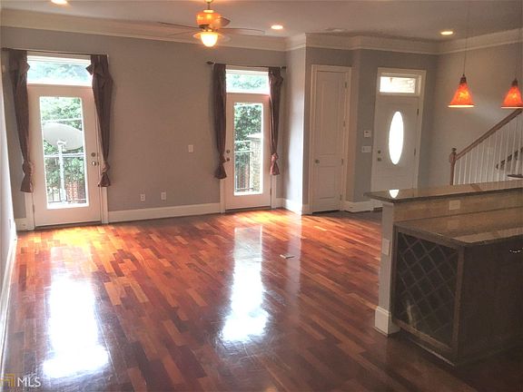 Wonderful Midtown location for this large brick townhome in a gated community! You can walk to many of the best Midtown shops and restaurants; Fox theater just a few blocks away; Piedmont Park is also close by! Front door is located on Third St that's a quiet residential street with a beautiful historic condo building. A large newly refinished patio on 3rd St allows for perfect al fresco dining! The first floor features a large open and light filled living space with 10' ceilings and large enough for a separate dining area.