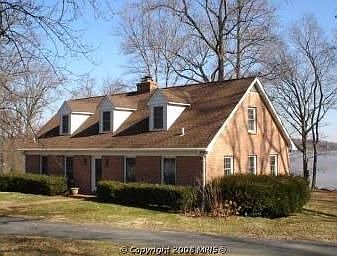 Unique & secluded waterfront brick cape cod on 9.91 acres located on the Elk River. Open concept. Large living/dining room with wood burning fireplace. Wood floors. Fully equipped kitchen. Main floor master suite. Extra room on the main level that can be used as a den, office or 5th bedroom. Trex stairs with 3 landings and pole lamps leading to a 150' dock with 7000 lb. boat lift, jet ski davit, electric outlets & lighting. Detached four bay garage with workshop area. Finished walk out basement with new pergo flooring. Many updates such as HVAC, windows & roof.