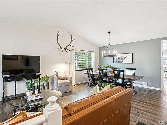 Thoughtfully updated 4 bedroom plus an office / 3 bath updated ranch in the sought after Northridge neighborhood. Fantastic open living / dining room area with vaulted ceilings flows into the beautifully updated, light and bright eat-in kitchen with charming fireplace and hearth area. Easy access from the kitchen through sliding doors to the multiple outdoor entertaining areas in the huge yard on this generous corner lot. The spacious primary suite and two additional bedrooms and bath are all on main floor. A fully finished basement hosts the fourth bedroom with egress window, another bath, great office or exercise room , laundry and huge media/family room. Many possibilities for various lifestyles with this very functional floor plan. Attached two car garage. New fence, driveway and roof. Newer mechanicals. Access to four pools in the Highlands Ranch area with especially close proximity to Northridge pool. A truly special opportunity just minutes to recreation centers, parks, trails, top-rated Douglas County schools, and all the shopping, restaurants, bars, and entertainment options at Town Center. Easy access to C470 allows for quick commute times to Denver and DTC.