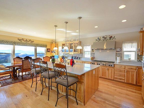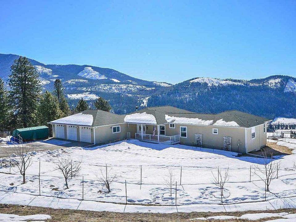 You have NEVER seen a view like this!!! This is pure eye candy property for anyone lucky enough to own this custom built secluded rancher. Huge kitchen with gas range and built in double ovens. Quartz counter tops with hickory cabinets and flooring. Master suite boasts a gas fireplace, walk in shower, jetted tub, and amazing views. 3 car garage and huge shop for your RV and toys. Orchard of fruit trees. A wildlife haven of deer, elk, moose and hummingbirds. Porch & deck for entertaining. Fabulous home!!!