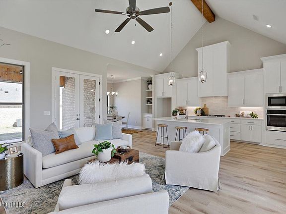 Amenities galore that include a Community Pool, Clubhouse, Playground, Tennis Courts, and a Community Lake with fishing opportunities! This open concept floor plan is one of the most popular plans available with 2,256 sq/ft, featuring a large open living area with vaulted and beamed ceiling, as well as a formal dining area! The kitchen is complete with granite counter tops, gas cooktop, built in oven and microwave and a walk-in pantry! The Primary Suite is on the back of the home and features a spacious room, and the primary bath has a tiled shower, with rain head faucet, soaking tub, dual vanities with built-in's galore and a large walk-in closet! This floor plan also has a private, home office! Throughout this home, you will find Luxury Vinyl Plank (LVP) flooring, and stylish finishes! The back porch is equipped with a tv connection, perfect for unwinding after a long day at work. Cornerstone is an established subdivision that is conveniently located off Hwy 471. Call your REALTOR® today to schedule a showing! Directions: From Hwy 471: Turn onto Grants Ferry Parkway from Hwy 471. Take the 2nd entrance on the right, which will be the back of Cornerstone (Cornerstone Drive). Once you enter, immediately turn right (this is also Cornerstone Drive). Continue straight through into the new phase, turn left onto Prosperity Place, and the home will be on the corner of Prosperity and Radiance.