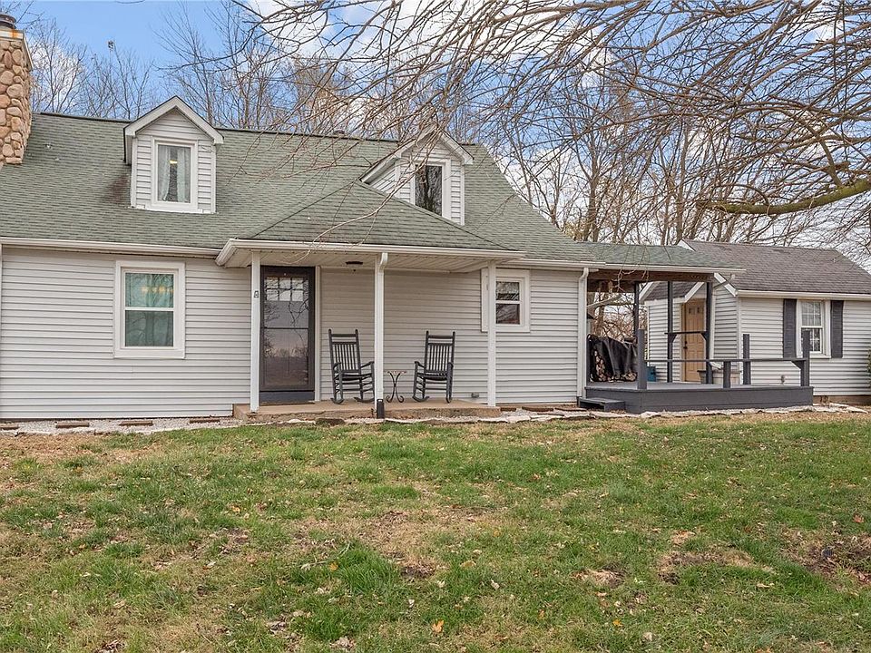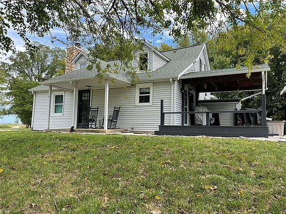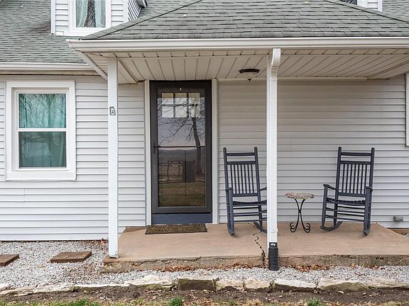 Looking for a private getaway, look no further than this 3 bed/2 bath home on a picturesque 5.5 acres! Enter to find an open concept main living area featuring unique eat-in kitchen w/stainless appliances & ample cabinet space, dining area & huge living room w/impressive stone wood burning fireplace. Main floor master suite w/walk-in closet & laundry hook-ups. 2 spacious bedrooms w/wood laminate floors upstairs. Hall bath w/custom barnwood vanity. Summer kitchen w/water & electric, enclosed garden & wood barn w/concrete floor. 2021 updates: New Windows & fireplace insert. 2016- 2020: High Efficiency HVAC w/whole house air purifier & dehumidifier, water softener w/UV light & reverse osmosis, roof on back of house & covered deck, gutters, siding, light fixtures, doors, base trim, bath fixtures, flooring & so much more! Less than 30 minutes to St Louis and the Sunsets will leave you in awe! Home nestled at end of private drive-please do not venture down drive unless you have appointment.