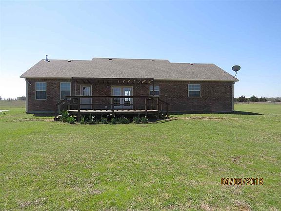 This home is waiting for its new owner..Beautiful 3 bd 2 bath brick home on 9.63 acres. Stained concrete flooring throughout, concrete countertops in kitchen and bathrooms. Custom kitchen complete with a walk in pantry, and stainless steel appliances. Tankless hot water heater, security system, storm cellar. 24 x 30 insulated shop. Large Covered back patio with tons of entertaining space. Beautiful country setting.