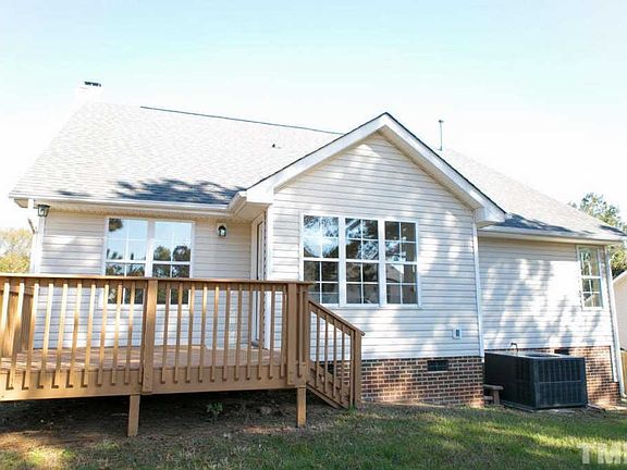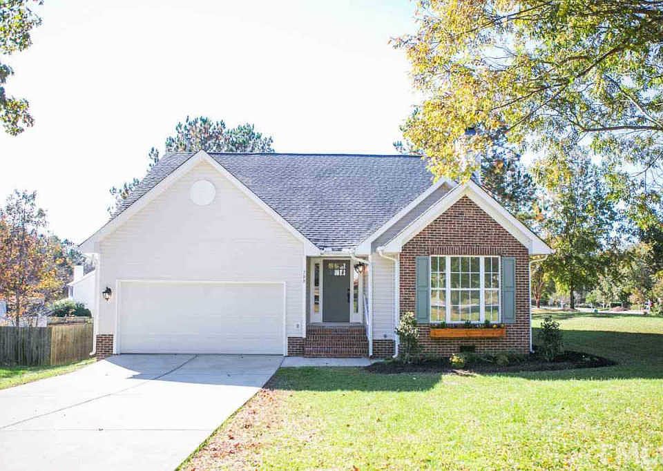 Beautiful ranch home just minutes from Downtown Wake Forest. Completely renovated interior features new paint, carpet, engineered hardwoods, & light fixtures. Open concept living area w/fireplace in family room & updated kitchen w/stainless appliances, tile backsplash, & kitchen island. Master bedroom at back of house features ensuite w/ dual sink vanity, garden tub, sep shower, & gorgeous fixtures. 2 add'l bedrooms & hall bath at front of house. Add'l features incl 2 car garage, deck, & large yard.