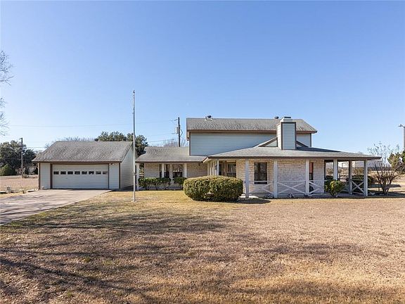 IMPORTANT - the lot behind the house has a slab on it and that is part of the 2 acres. It is pretty easy to see where the perimeter lies but we are still looking for survey. The lot extends nearly to the fields to the north. The wrap-around front porch is everyone's idea of a country home. House is nice enough to move right in and has a terrific family room with vaulted ceiling, spacious island kitchen and big dining area. The master is on the first floors with a full bath. The upstairs consists of 2 bedrooms, full bath and a bonus room, perfect set-up for kids. The oversized detached garage should hold any vehicles you have. There is a fenced area for the dogs as well. Wonderful space and so close to town!