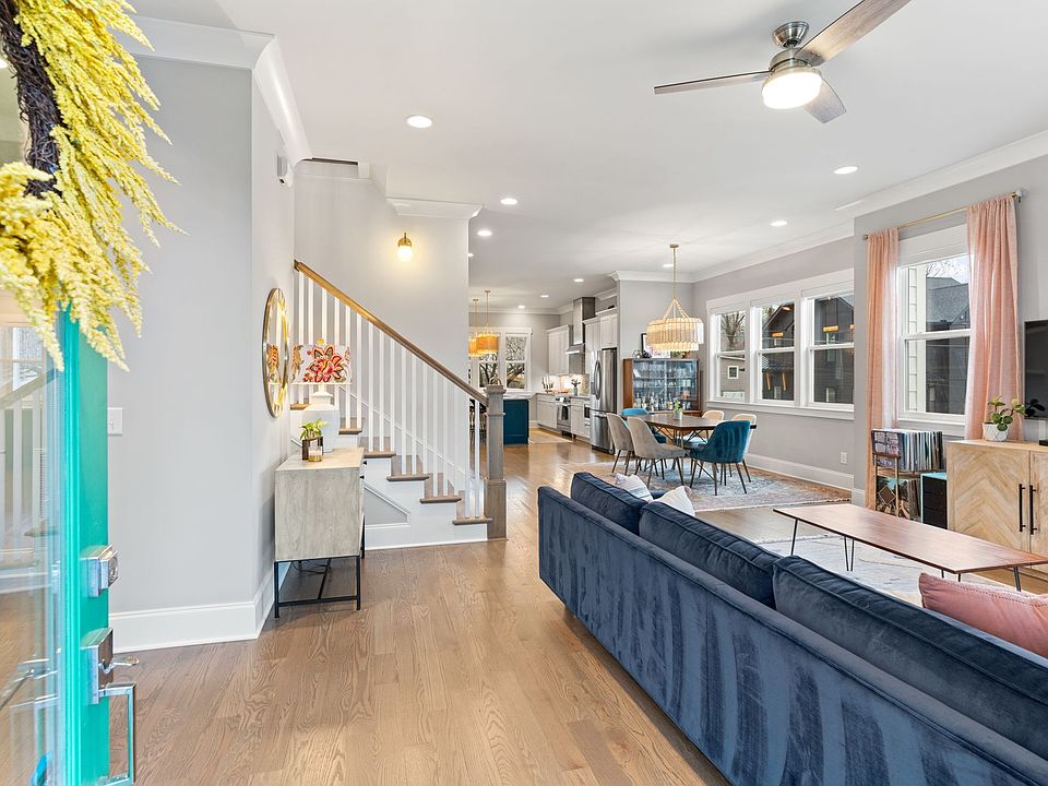 Stunning East Nashville home in the heart of Shelby Village, walkable to 5 points! Newer construction, filled with natural light, spacious 10 ft ceilings, upgraded designer fixtures and details, and all the modern amenities. Amazing opportunity to own a single family home, not an HPR! Minutes from downtown, Shelby Park, and all the east side has to offer. Built in 2019 by Cadence Construction with features from Peggy Newman Designs, the home features a gorgeous open kitchen, quartz island, brand new Bosch induction range, first floor vaulted primary suite, solid oak floors, and a bonus living room upstairs. Fully privacy fenced backyard, off street parking, and new deck. Other features include tankless hot water heater, dual zone HVAC system, two laundry rooms, and 8 foot doors throughout.